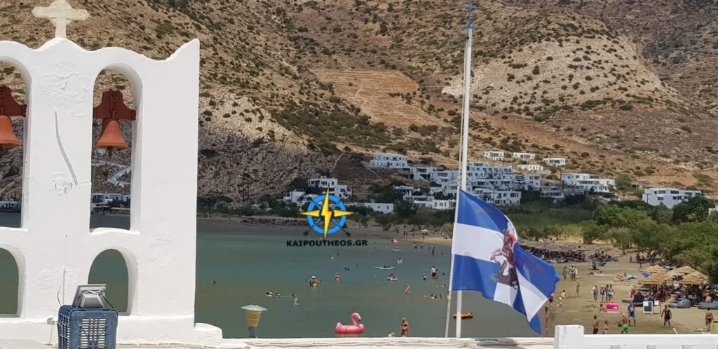 Παρακάτω η σημαία του Αγίου Γεωργίου Καμαρων Σίφνου μεσιστια.