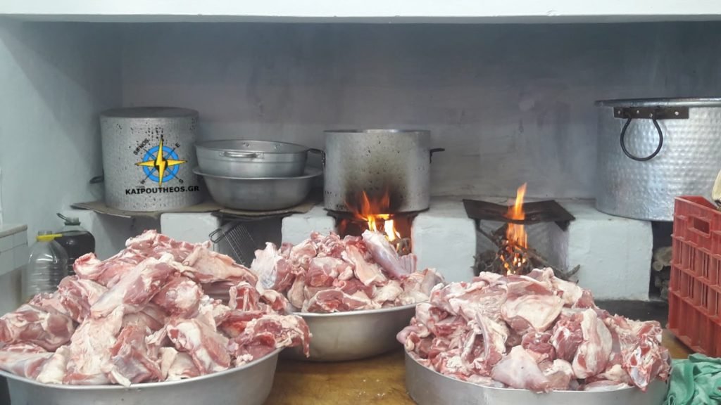 Όπως βλέπετε η φωτιά άναψε. Τα καζάνια μπήκαν στην πανωστρια.Ρεβυθαδα,και μακαρόνια με κρέας από Σιφνιους μάγειρες.