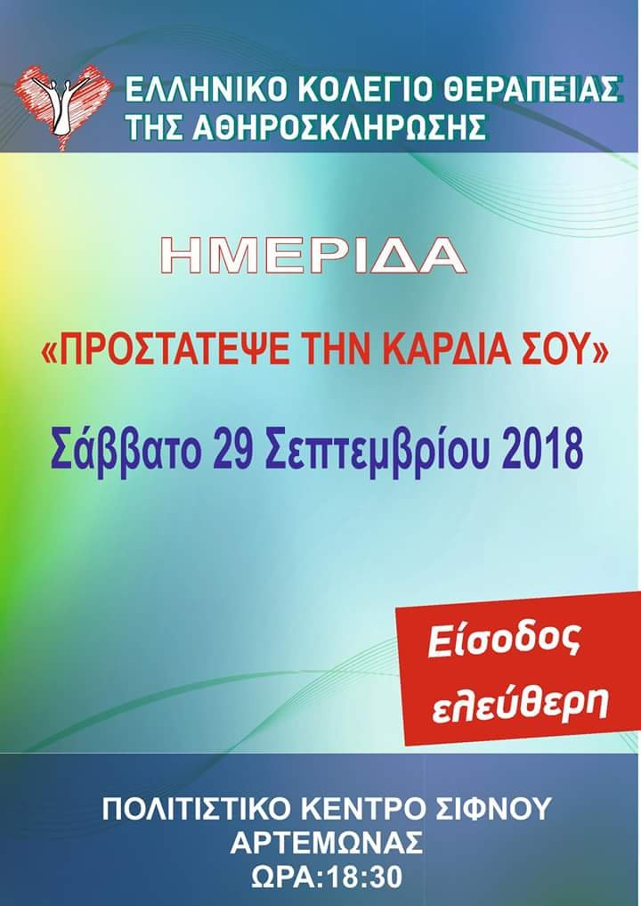 Επιστημονικός χορηγός: ΕΛΛΗΝΙΚΟ ΚΟΛΛΕΓΙΟ ΘΕΡΑΠΕΙΑΣ ΤΗΣ ΑΘΗΡΟΣΚΛΗΡΩΣΗΣ