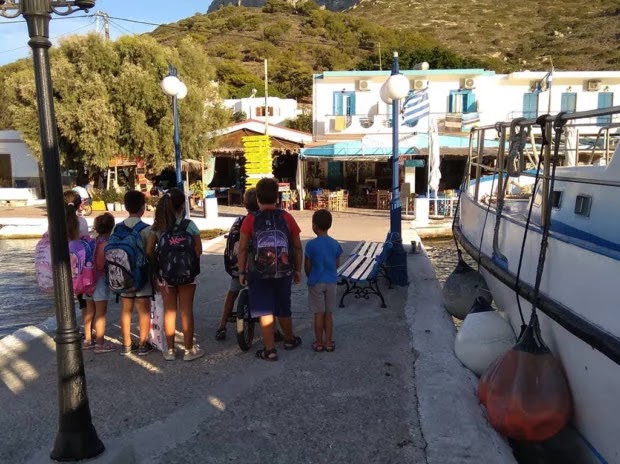 Πρώτα απ΄όλα είναι μονοθέσιο. Εχω τρεις τάξεις αυτή τη στιγμή. Ένα παιδάκι στην πρώτη τάξη, δύο παιδάκια στην τρίτη τάξη και πέντε παιδάκια στην πέμπτη τάξη. Αυτό σημαίνει ότι πρέπει να βρω τις ισορροπίες ανάμεσα σε τρεις τάξεις. Πώς να τους κάνω το μάθημα, το χρόνο που θα αφιερώσω σε κάθε τάξη… Αυτό καλούμαι για πρώτη φορά να το αντιμετωπίσω και να το ισορροπήσω. Ακόμα πιο ιδιαίτερο είναι το γεγονός ότι από τον Οκτώβριο το σχολείο θα μείνει μόνο με δύο παιδάκια, γιατί τα υπόλοιπα θα πάνε σε σχολείο της Καλύμνου όταν θα ολοκληρωθεί η σεζόν, αφού οι γονείς τους θα κλείσουν τα καταστήματά τους εδώ και θα επιστρέψουν στην Κάλυμνο για τον χειμώνα. Τα παιδάκια θα επιστρέψουν στο σχολείο της Τελένδου πάλι μετά το Πάσχα. Ουσιαστικά την σχολική χρονιά θα την βγάλουμε μαζί με δύο παιδιά της πέμπτης τάξης.