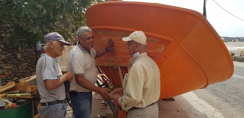 Ο Καπετάν Γιώργης ο Καμπουράκης συγκινημένος μπροστά στην θρυλική λάντζα του την παλιά ΑΓΙΟΣ ΣΠΥΡΙΔΩΝ η οποία ξαναπήρε πάλι ζωή απο τον μαστρο Νίκο Στρατή (Γιογλή)