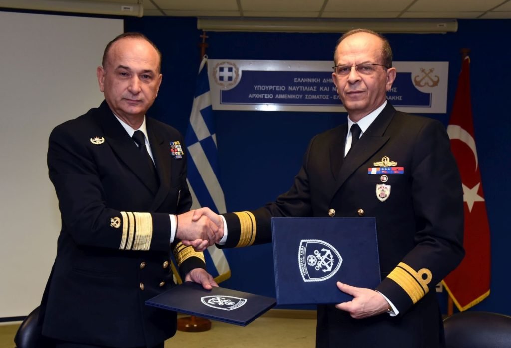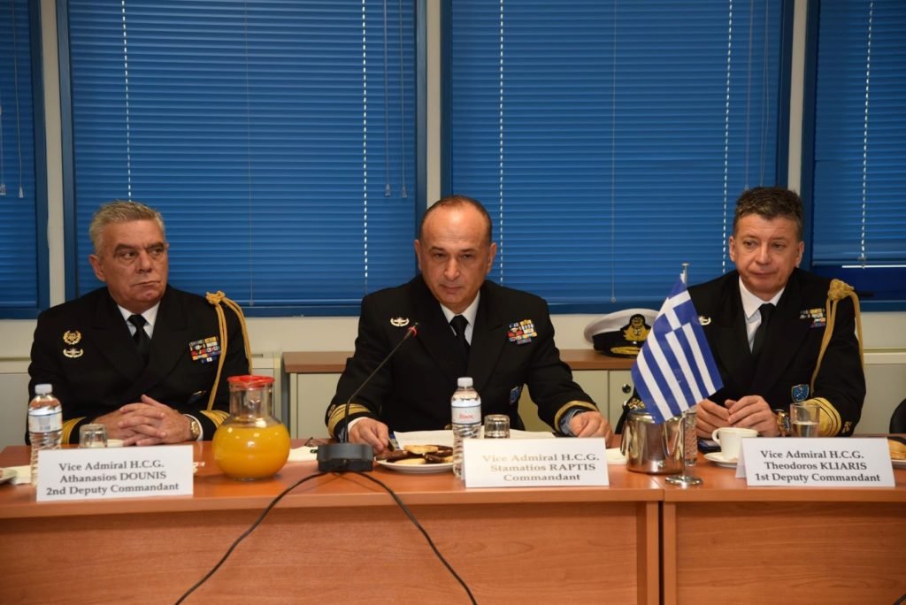 Ο Αρχηγός της Τουρκικής Ακτοφυλακής, συνοδευόμενος από τετραμελή αντιπροσωπεία από την Τουρκία και από λοιπά στελέχη της Πρεσβείας της Τουρκίας στην Αθήνα, πραγματοποίησε διμερή συνάντηση στο Αρχηγείο του Λ.Σ.-ΕΛ.ΑΚΤ με σκοπό την ανταλλαγή απόψεων σε θέματα αμοιβαίου ενδιαφέροντος. Παρόντες στην συνάντηση ήταν επίσης ο Α’ Υπαρχηγός Αντιναύαρχος Λ.Σ. Θεόδωρος ΚΛΙΑΡΗΣ, ο Β’ Υπαρχηγός Αντιναύαρχος Λ.Σ. Αθανάσιος ΝΤΟΥΝΗΣ, οι Διευθυντές των Κλάδων του Αρχηγείου Λιμενικού Σώματος – Ελληνικής Ακτοφυλακής, οι Διοικητές της 8ηςκαι 9ης Περιφερειακής Διοίκησης Λιμενικού Σώματος, εκπρόσωποι και Διπλωματικοί Σύμβουλοι των Υπουργείων Εξωτερικών, Ναυτιλίας και Νησιωτικής Πολιτικής, Μετανάστευσης και Ασύλου, επιτελικά στελέχη του Αρχηγείου Λιμενικού Σώματος – Ελληνικής Ακτοφυλακής, καθώς και ο Αξιωματικός Σύνδεσμος του Λιμενικού Σώματος – Ελληνικής Ακτοφυλακής στην Πρεσβεία της Άγκυρας στην Τουρκία.