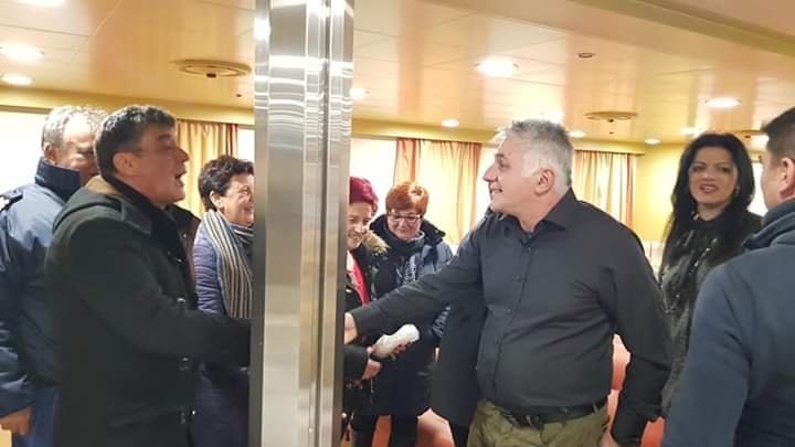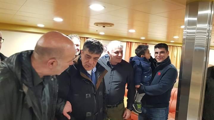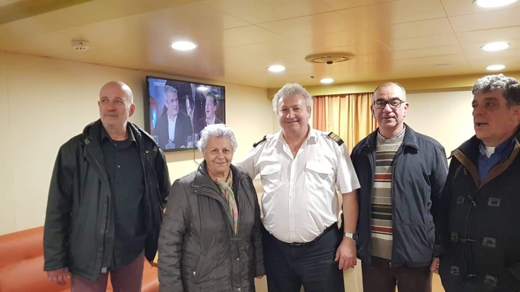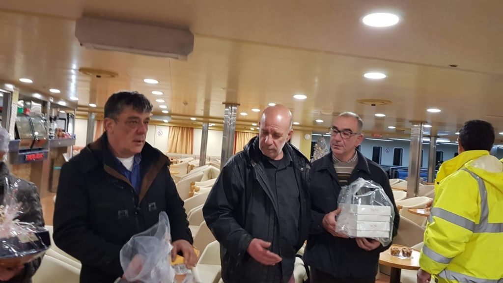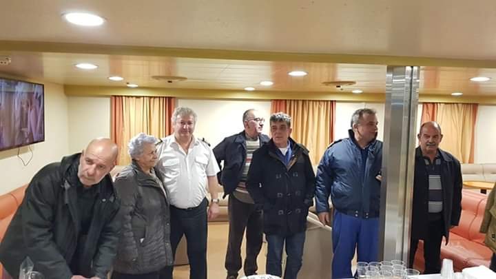 Στο πλοίο τους περίμεναν ο καπεταν Μιχαλης Λυγνός με τον μαστρο Γιάννη Ζουρα και όλο το πλήρωμα για ανταλλαγή ευχών.