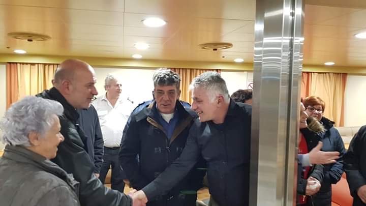 Αρκετοί κάτοικοι το περίμεναν στο λιμάνι με καπνογόνα και κορναρίσματα απο τα αυτοκίνητα, μεταξύ αυτών οι δυο Αντιδήμαρχοι Κυριοι Γιώργος Σταυριανος και Νικόλαος Ποδενές,ο πρόεδρος του Δημοτικού Συμβουλίου Κωνσταντινος Σουλης,η πρόεδρος του οικ συλλόγου ΜΕΡΟΠΗ κυρία Μαρία Καλογήρου,ο πράκτορας Γιώργος Ξύδης,οι καβοδέτες Αντώνης Καμπουράκης, Γιώργος Εξυλζές και φυσικά ο καπετάν Γιάννης Σιγάλας με τον μικρό Ραφαήλ.