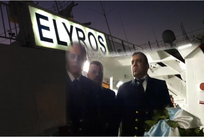 Στις 12 το βράδυ της Παρασκευής ο πλοίαρχος του “ΕΛΥΡΟΣ” Μάρκος Πολομαρκάκης, φανερά συγκινημένος, συνοδευόμενος από μέλη του πληρώματος και επιβάτες, απότισε φόρο τιμής ρίχνοντας ένα στεφάνι στα παγωμένα νερά, στον υγρό τάφο για εκατοντάδες ψυχές Κρητικών