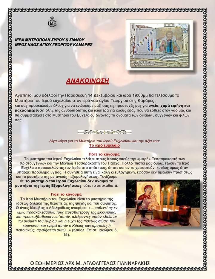ΚΑΛΕΣΜΑ ΣΤΟ ΜΥΣΤΗΡΙΟ ΤΟΥ ΙΕΡΟΥ ΕΥΧΕΛΑΙΟΥ ΣΤΟΝ Ι ΝΑΟ ΑΓΙΟΥ ΓΕΩΡΓΙΟΥ ΚΑΜΑΡΩΝ ΣΙΦΝΟΥ