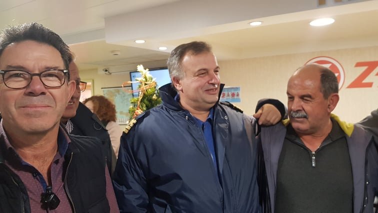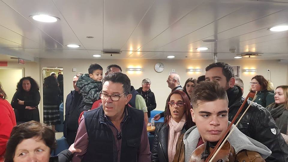 Η παρέα μαζεύτηκε στο σαλόνι του πλοίου όπου κατέβηκε και ο πλοίαρχος καπετάν Μιχάλης Λυγνός με το τον Α μηχανικό μαστρο Γιάννη Ζούρα και όλο το πλήρωμα.