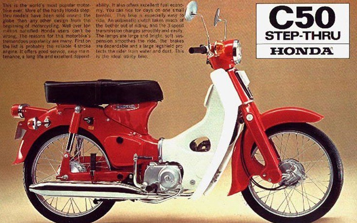 Ο μακροχρόνιος συνεργάτης του Χόντα μπήκε μια μέρα στο σχεδιαστήριό του και του ζήτησε να φτιάξει το μηχανάκι με τρόπο που να μπορεί να οδηγηθεί με το ένα χέρι, ώστε να μπορούν οι ντελιβεράδες του Τόκιο να κουβαλούν στο άλλο τις παραγγελίες με τα νουντλς! «Αν μπορέσεις να σχεδιάσεις μια μικρή μοτοσικλέτα, ας πούμε 50 κυβικών, με ένα κάλυμμα για να κρύβει τη μηχανή, τους σωλήνες και τα καλώδια στο εσωτερικό, τότε μπορώ να την πουλήσω. Δεν ξέρω πόσα μαγαζιά με νουντλς υπάρχουν στην Ιαπωνία, αλλά σε πάω στοίχημα ότι κάθε κατάστημα θα θελήσει μία για τους ντελιβεράδες του».