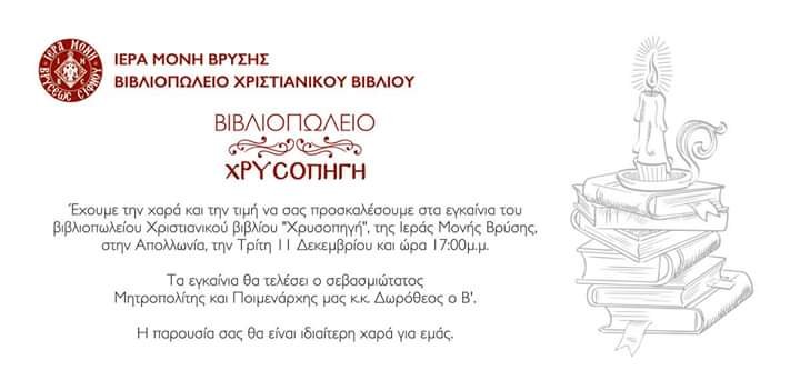 ΠΡΟΣΚΛΗΣΗ ΣΤΑ ΕΓΚΑΙΝΙΑ ΤΟΥ ΧΡΙΣΤΙΑΝΙΚΟΥ ΒΙΒΛΙΟΠΩΛΕΙΟΥ “ΧΡΥΣΟΠΗΓΗ”ΣΤΗ ΣΙΦΝΟ ΑΠΟ ΤΟΝ ΜΗΤΡΟΠΟΛΙΤΗ ΣΥΡΟΥ