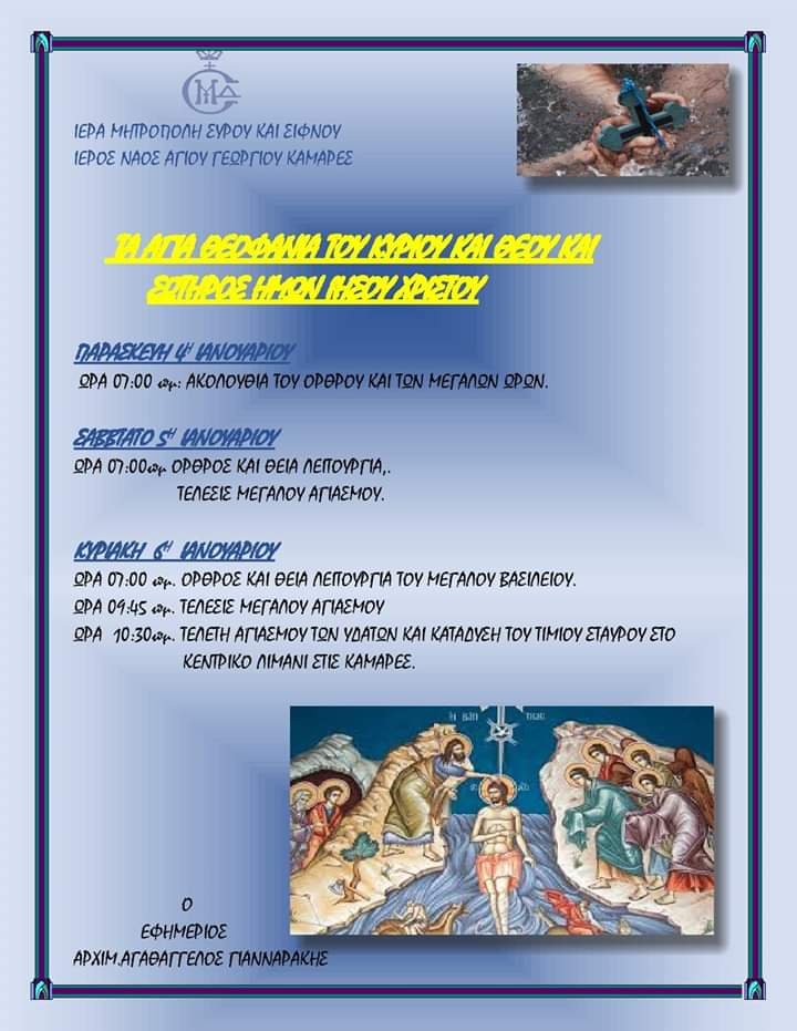 ΠΡΟΓΡΑΜΜΑ ΤΩΝ ΘΕΟΦΑΝΕΙΩΝ ΣΤΟ Ι ΝΑΟ ΑΓΙΟΥ ΓΕΩΡΓΙΟΥ ΚΑΜΑΡΩΝ ΣΙΦΝΟΥ