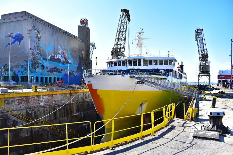 Με  τα χρώματα της LEVANTE FERRIES βάφεται το ΑΝΔΡΕΑΣ ΚΑΛΒΟΣ στην δεξαμενή Βασιλειάδη μετά την αγορά του από την ΖΑΝΤΕ FERRIES.