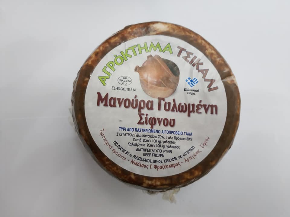 Η γνωστή γυλωμένη μανούρα,το ιδιαίτερο αυτό τυρί της Σίφνου κατάφερε να πάρει το χρυσό βραβείο που βλέπουμε.
