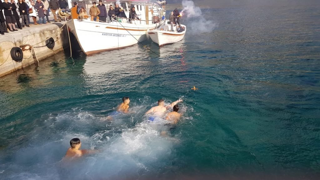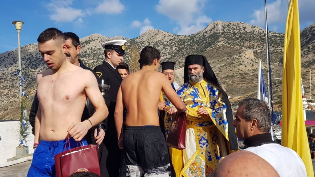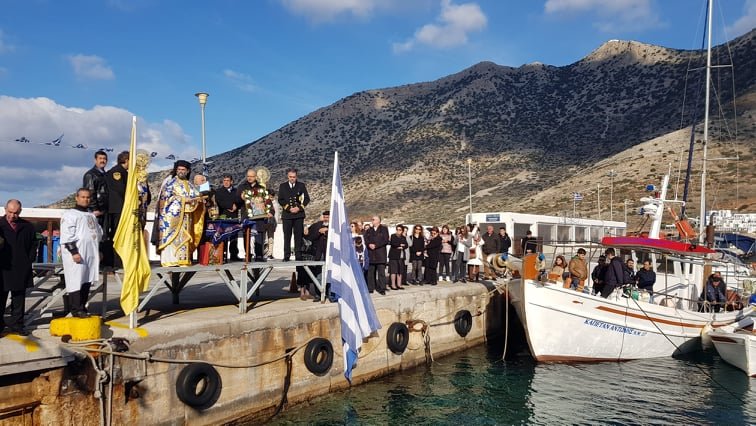 Με πλήθος κόσμου και παρουσία του Δημάρχου,Επάρχου,μελών Δημοτικού Συμβουλίου,προέδρου αντιπολίτευσης,Λιμεναρχείου,Λιμενικού ταμείου και Συλλόγων (ΜΕΡΟΠΗ ΠΟΛΙΤΙΣΤΙΚΟΣ κλπ)πραγματοποιήθηκε η τελετή αγιασμου των υδάτων του Λιμανιού.