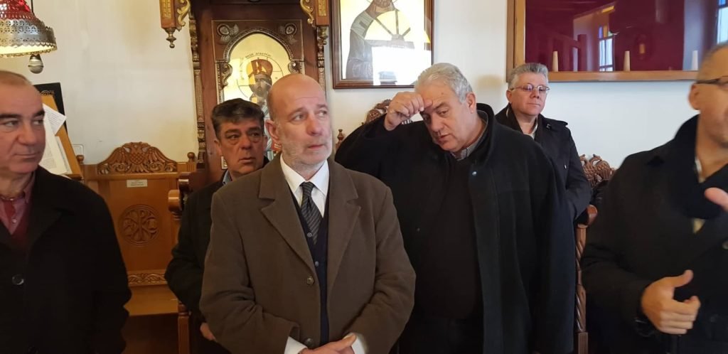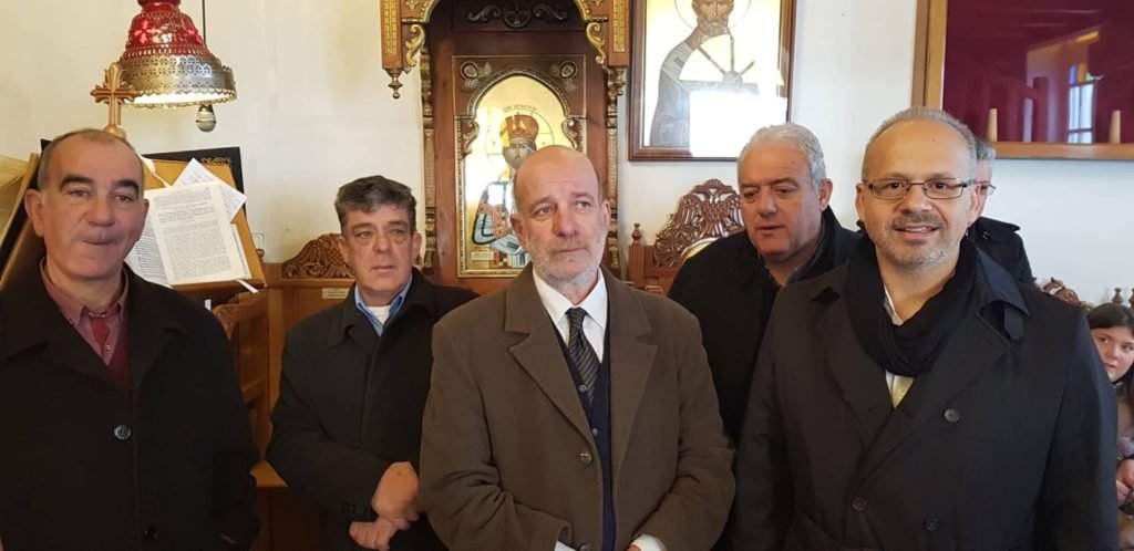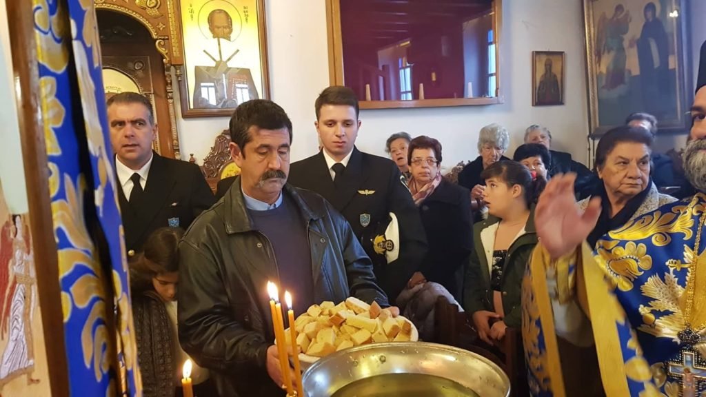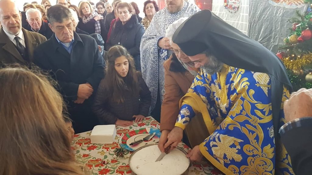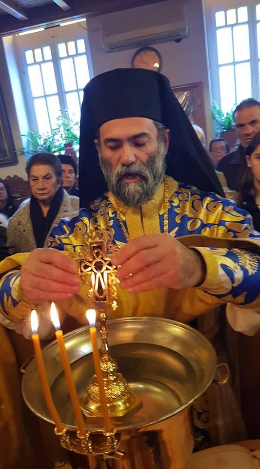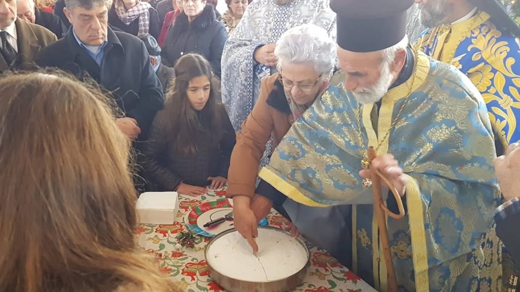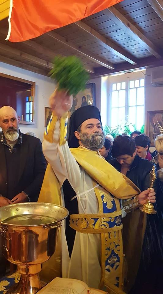 Είχε προηγηθεί ο ορθρος και η θεία λειτουργία του Μ Βασιλείου και η τέλεσις του Μεγάλου Αγιασμού στον Ιερό ναό Αγίου Γεωργίου από τον Αρχιμανδρίτη Αγαθάγγελο.
