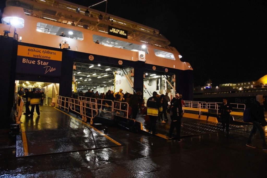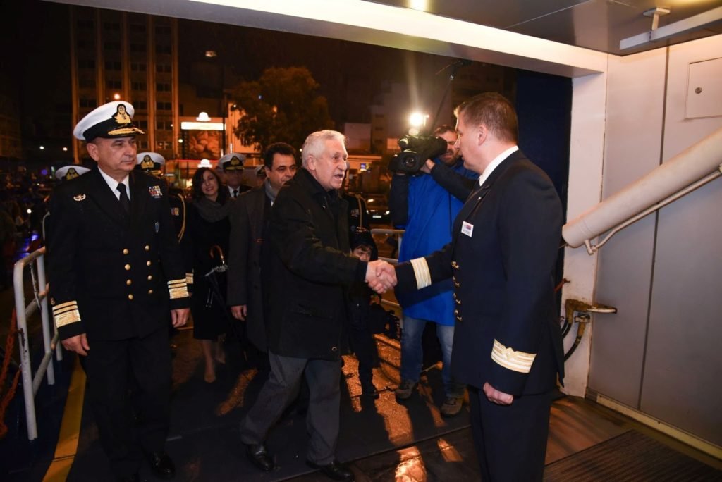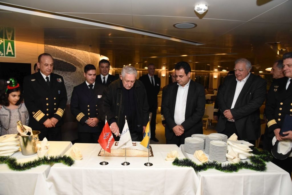 Λίγο μετά τα μεσάνυχτα κατέπλευσε στον Πειραιά το ”ΜΠΛΟΥ ΣΤΑΡ ΔΗΛΟΣ”, πρώτο πλοίο που μπήκε στο λιμάνι για το 2019. Οι κ.κ. Κουβέλης και Σαντορινιός, συνοδευόμενοι από τη φυσική ηγεσία του Λ.Σ. ΕΛΛ.- ΑΚΤ. ανέβηκαν στο πλοίο και αντάλλαξαν ευχές με τον πλοίαρχο, το πλήρωμα, και τους επιβάτες.