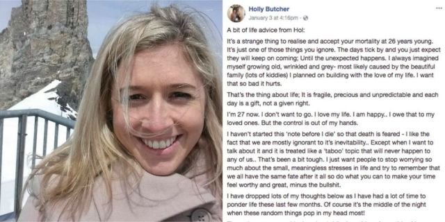 Η Χόλι Μπάτσερ απεβίωσε στις 4 Ιανουαρίου 2018, σε ηλικία 27 ετών. Είχε προσβληθεί από ανίατη μορφή καρκίνου και πριν πεθάνει ανέβασε μια ανοιχτή επιστολή στο Facebook.