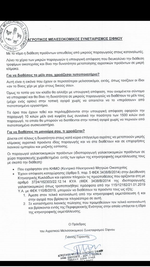 ΤΙ ΧΡΕΙΑΖΕΤΑΙ ΓΙΑ ΔΙΑΘΕΣΗ ΜΕΛΙΟΥ ΚΑΙ ΜΑΝΟΥΡΑΣ ΣΙΦΝΟΥ.ΑΛΛΑΓΕΣ