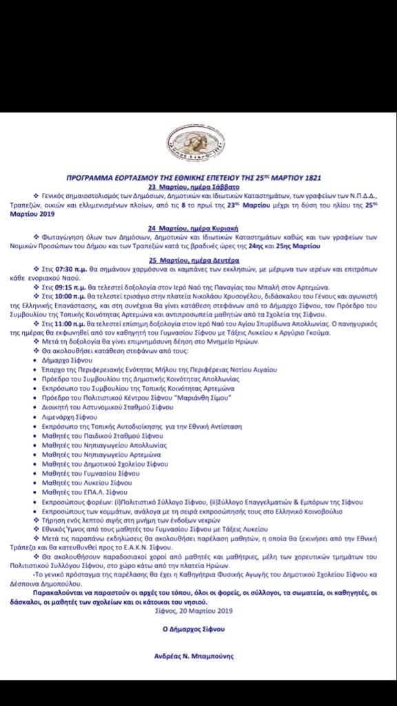 ΠΡΟΓΡΑΜΜΑ ΕΟΡΤΑΣΜΟΥ ΕΘΝΙΚΗΣ ΕΠΕΤΕΙΟΥ ΣΤΗΝ ΣΙΦΝΟ ΚΑΙ ΠΡΟΣΚΛΗΣΕΙΣ