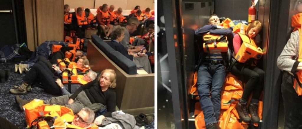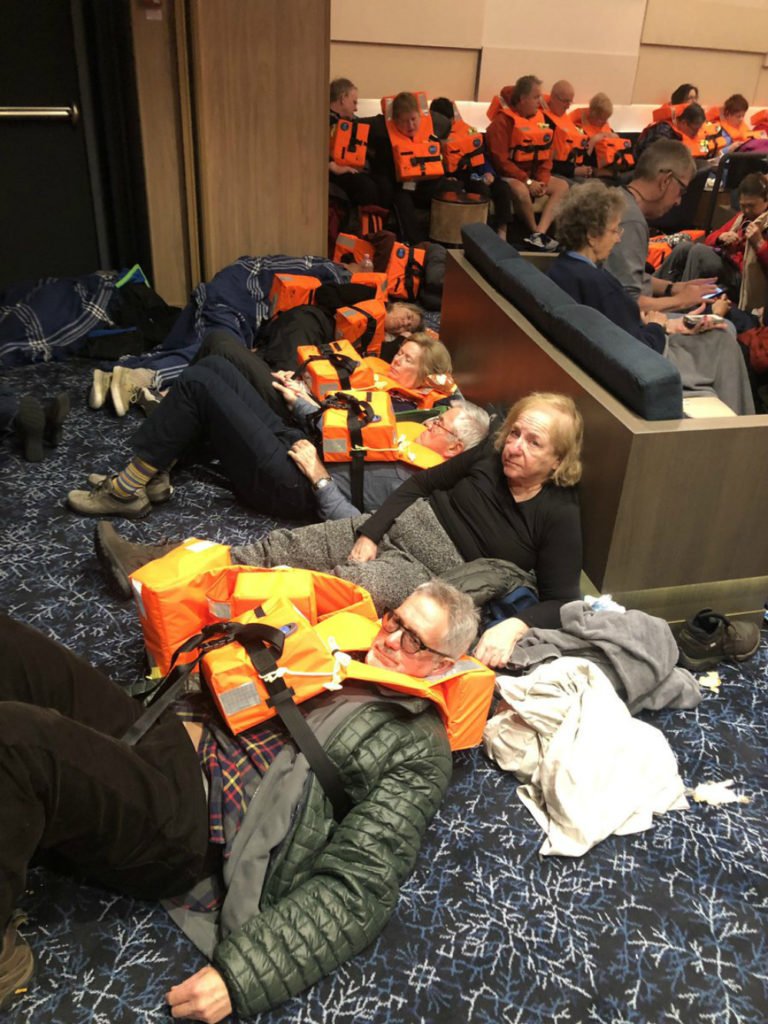 Η δραματική επιχείρηση εκκένωσης του πλοίου, με τους επιβάτες να ανεβαίνουν ένας-ένας στο ελικόπτερο για να μεταφερθούν στη στεριά, συνεχίζεται και αναμένεται να διαρκέσει όλη την Κυριακή.
