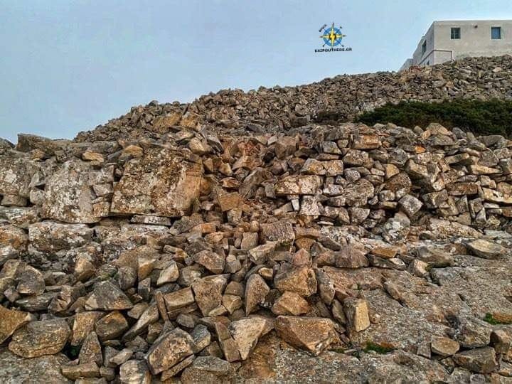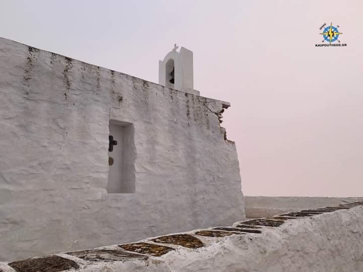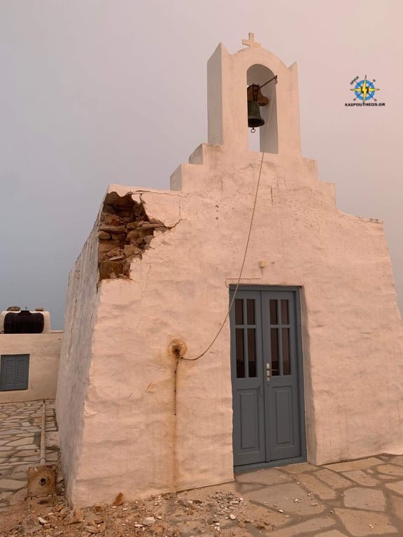 Όπως βλέπουμε και στην παραπάνω φωτογραφία το αλεξικεραυνο που υπήρχε(αριστερά) έχει πέσει κάτω ενώ στο σημείο που ήταν έπεσε και κομμάτι του τοίχου του ναού .