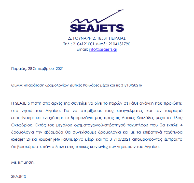 ΣΥΝΕΧΙΖΕΙ Η SEAJETS ΜΕ CHAMPION JET2-SUPER JET-SEA JET2 ΜΕΧΡΙ ΤΕΛΗ ΟΚΤΩΒΡΙΟΥ ΣΤΙΣ ΔΥΤΙΚΕΣ ΚΥΚΛΑΔΕΣ
