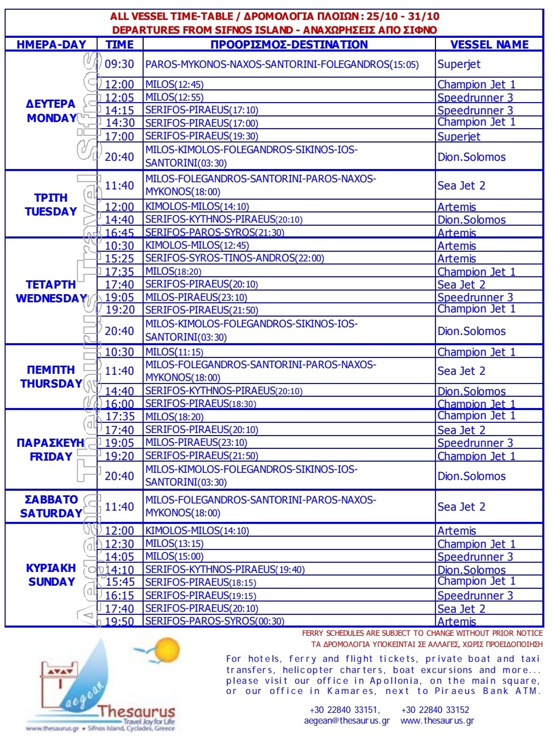 Αναχωρήσεις πλοίων από Σίφνο από 25 έως 31/10/21