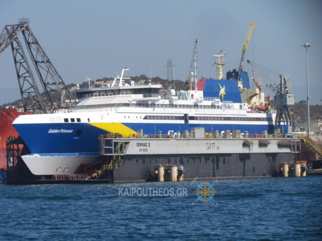 To “GOLDEN PRINCESS” της GOLDEN STAR FERRIES κατέβηκε σήμερα από την δεξαμενή του Περάματος, την “ΠΕΙΡΑΙΑΣ ΙΙ”.