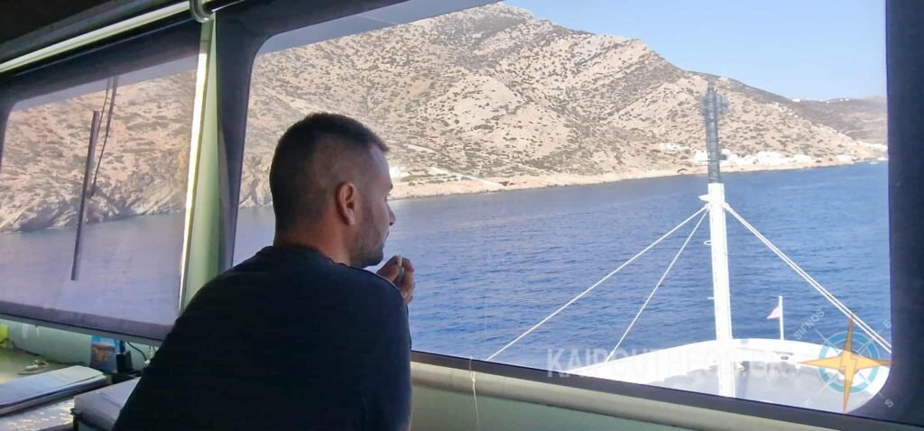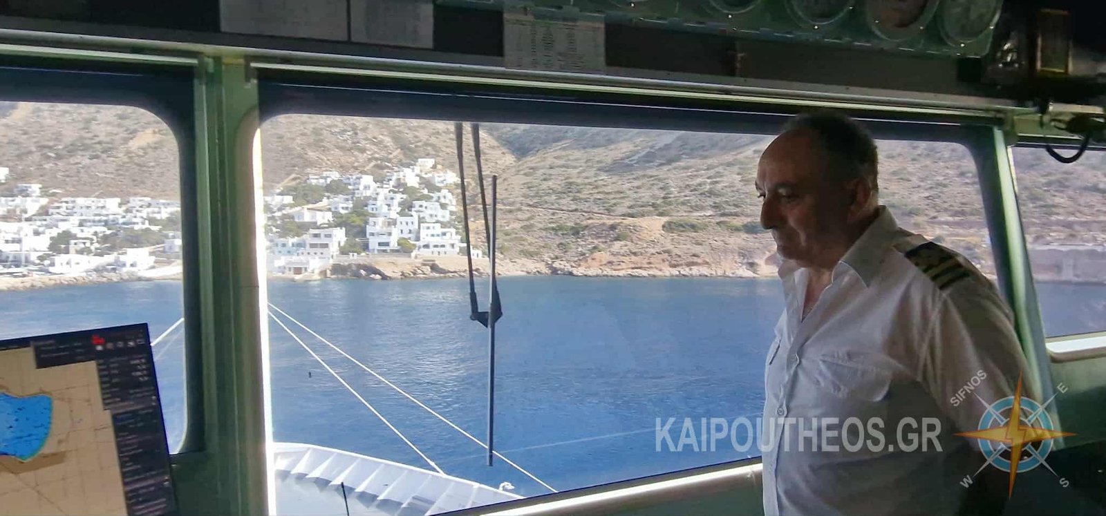 Ο καπετάν-Κυριάκος Μουζάκης, ο άνθρωπος που έχει συνδέσει την καριέρα του με αυτό το πλοίο.