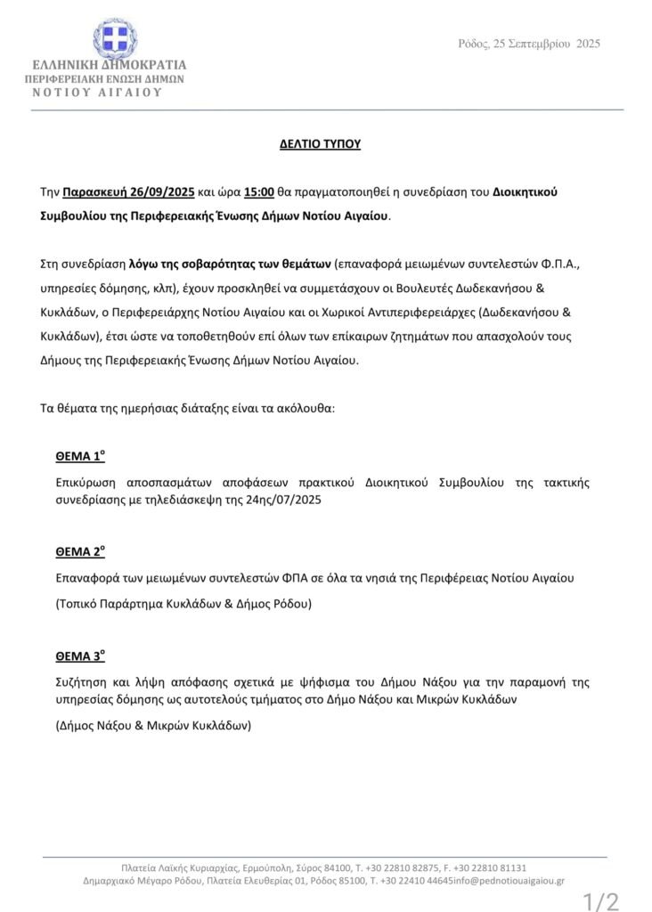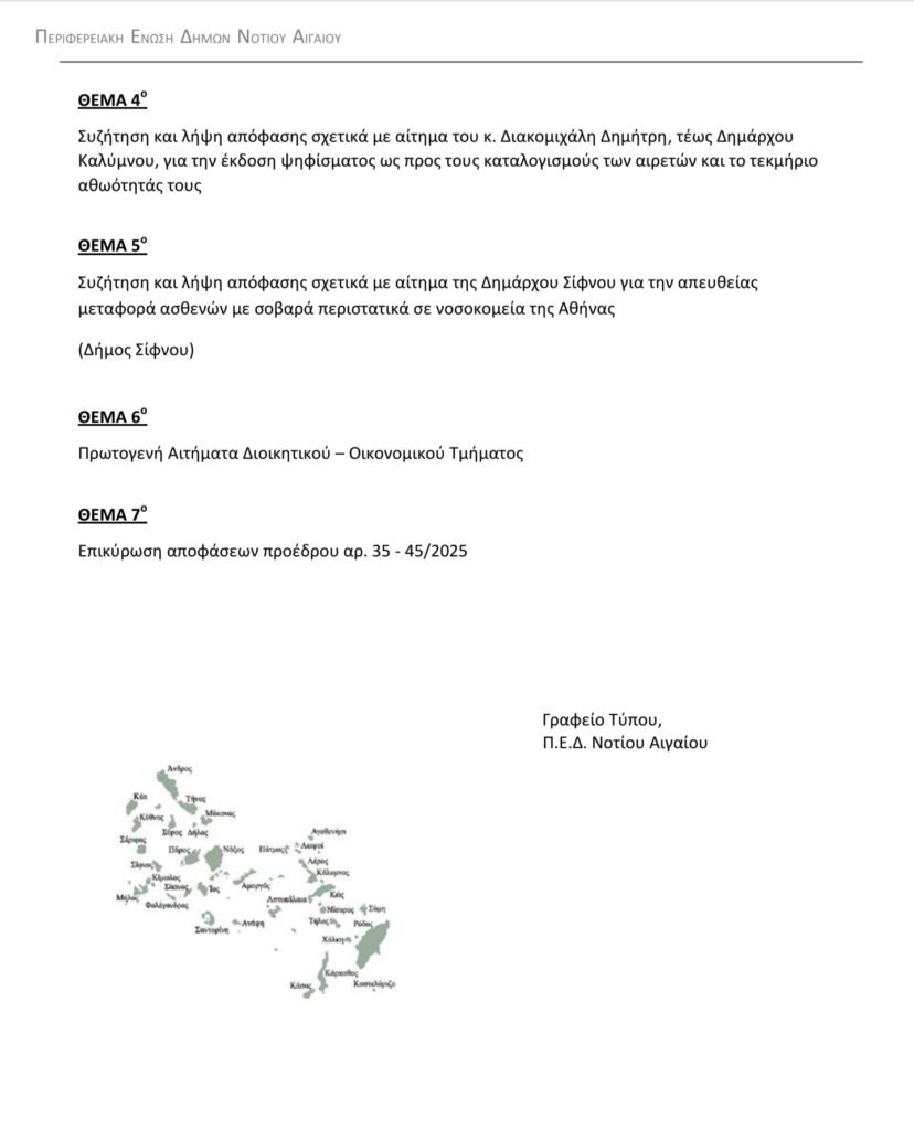 Συμβουλίου της Περιφερειακής Ένωσης Δήμων Νοτίου Αιγαίου.