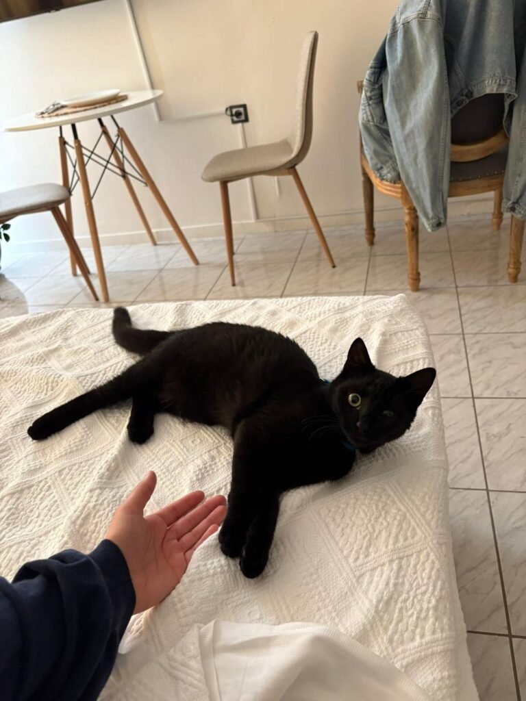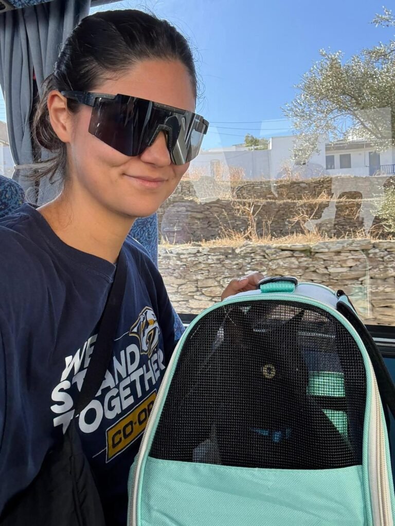 Η κυρία, Λιλιάνα, ενώ μιλούσα μου είπε “τη θέλετε; Μπορείς να την πάρεις” και απάντησα “Δεν είναι δική σου; ” και μου είπε “Όχι, απλά εμφανίστηκε μια μέρα, την λέμε 2025” και μου είπε ότι ήταν επειδή τον προηγούμενο χρόνο δέθηκαν πολύ με μια γατούλα που είχε δηλητηριαστεί κατά τη διάρκεια του χειμώνα όπως συμβαίνει μερικές φορές στη Σίφνο, και έτσι όταν τη γνώρισαν αποφάσισαν να μην δεθούν πολύ (την φρόντισαν πραγματικά, την είχαν εμβολιάσει μήνες πριν και πλήρωσαν επίσης το πρώτο της εμβόλιο κατά της λύσσας, είμαι ακόμα σε επαφή μαζί τους, τους έστειλα φωτογραφίες μόλις σήμερα το πρωί!! )