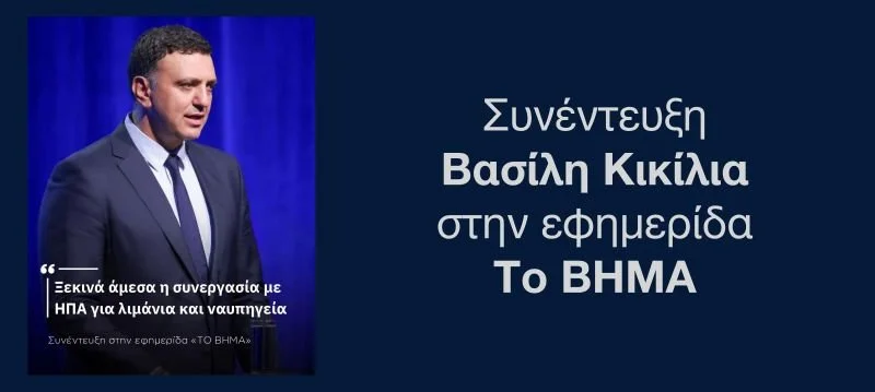 «Η στρατηγική σχέση της Ελλάδας με τις Ηνωμένες Πολιτείες Αμερικής είναι αναβαθμισμένη και σαφώς ισχυροποιημένη. Μελετούμε από κοινού ένα ρεαλιστικό και υλοποιήσιμο πλαίσιο, που θα παρουσιαστεί τους επόμενους μήνες, ξεκινώντας άμεσα σχέδιο συνεργασίας μεταξύ των δύο χωρών στους τομείς των λιμανιών και των ναυπηγείων» ανέφερε ο Υπουργός Ναυτιλίας και Νησιωτικής Πολιτικής, Βασίλης Κικίλιας, σε συνέντευξή του στην εφημερίδα «Βήμα της Κυριακής» και στον δημοσιογράφο, Χρήστο Κολώνα.