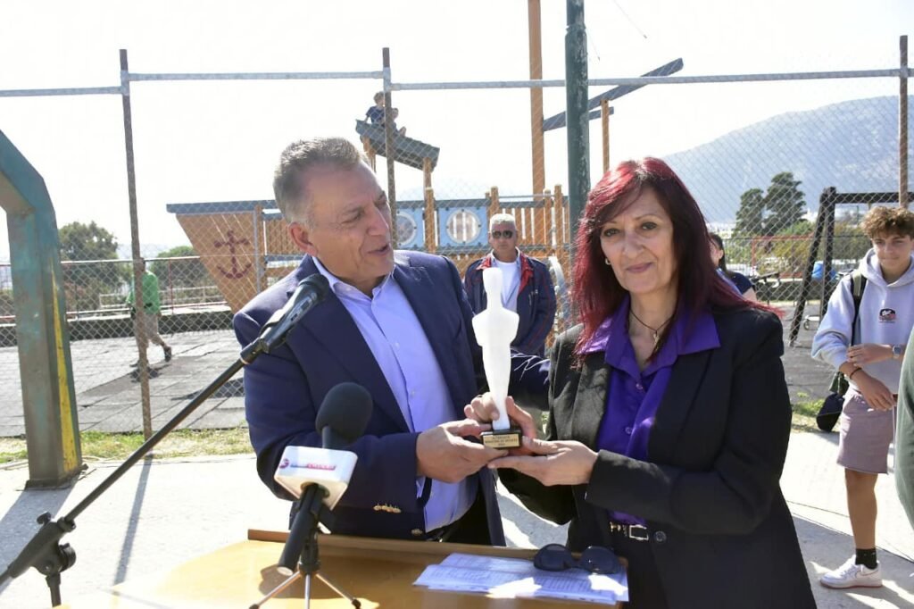 και την Καλλιόπη Βεκρή, α’’ Αντιπρόεδρο της ΕΠΣ Σάλας.