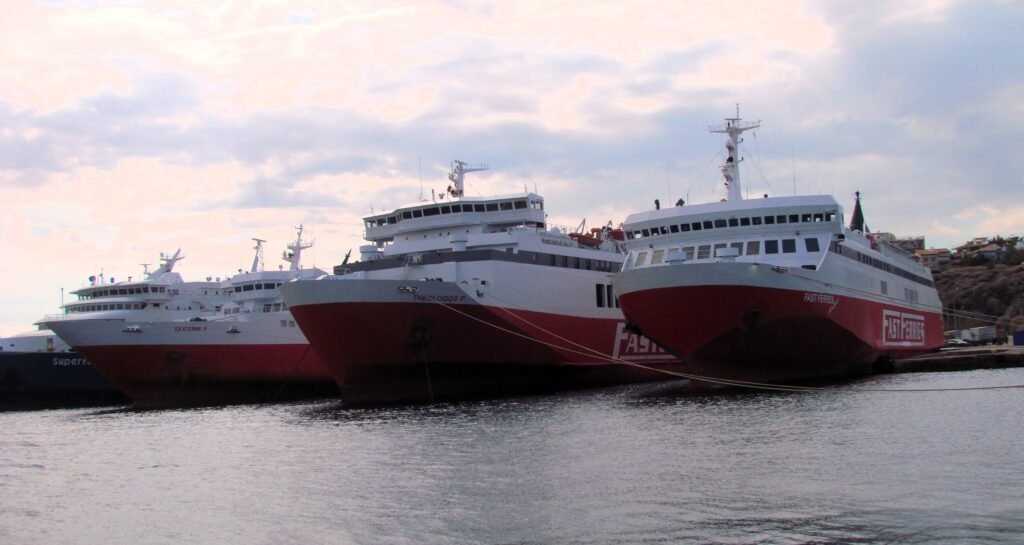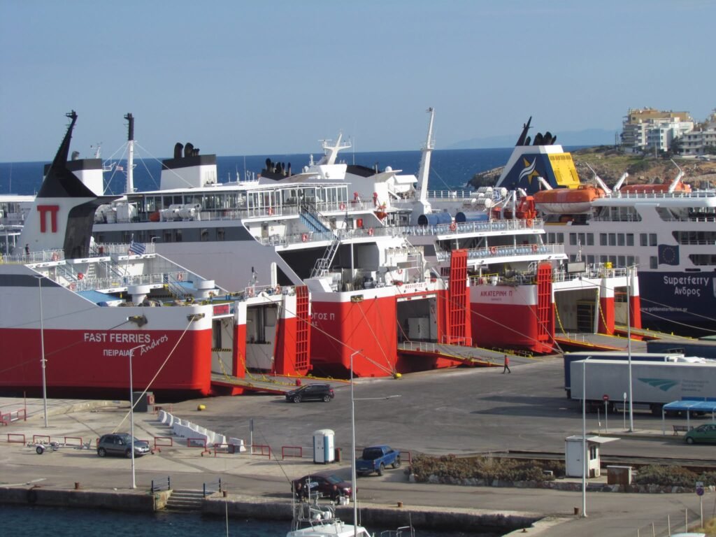 Aπό το μεσημέρι ήταν δεμένα δίπλα-δίπλα και τα τρία πλοία της FAST FEERIES, το “FAST FERRIES ANDROS”, το “ΘΕΟΛΟΓΟΣ Π” και το “ΑΙΚΑΤΕΡΙΝΗ Π”.