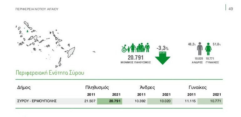 Από τις 20.791 κατοίκους της ΠΕ Σύρου, οι άνδρες είναι 10.020 και οι γυναίκες είναι 10.771.