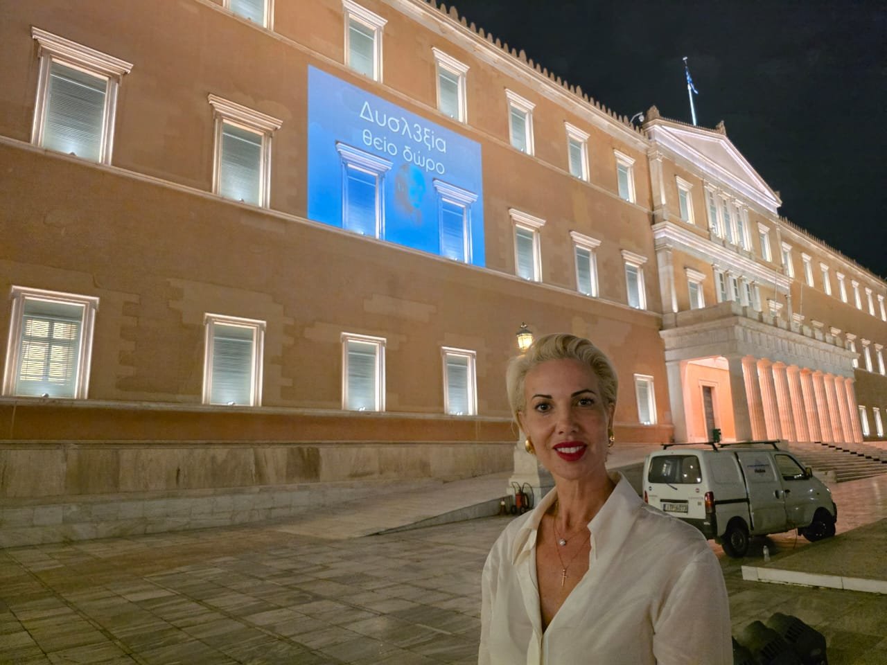 Η Βουλή των Ελλήνων φωταγωγήθηκε για τη Δυσλεξία με πρωτοβουλία της Κατερίνας Μονογυιού
