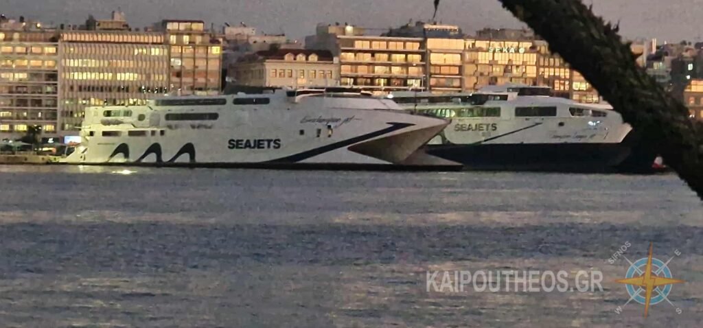 Το “EXPRESS JET” είναι δεμένο και αυτό εδώ στα «Διακοσάρια» και είναι το μοναδικό ταχύπλοο που ταξιδεύει για Σέριφο-Σίφνο-Μήλο.