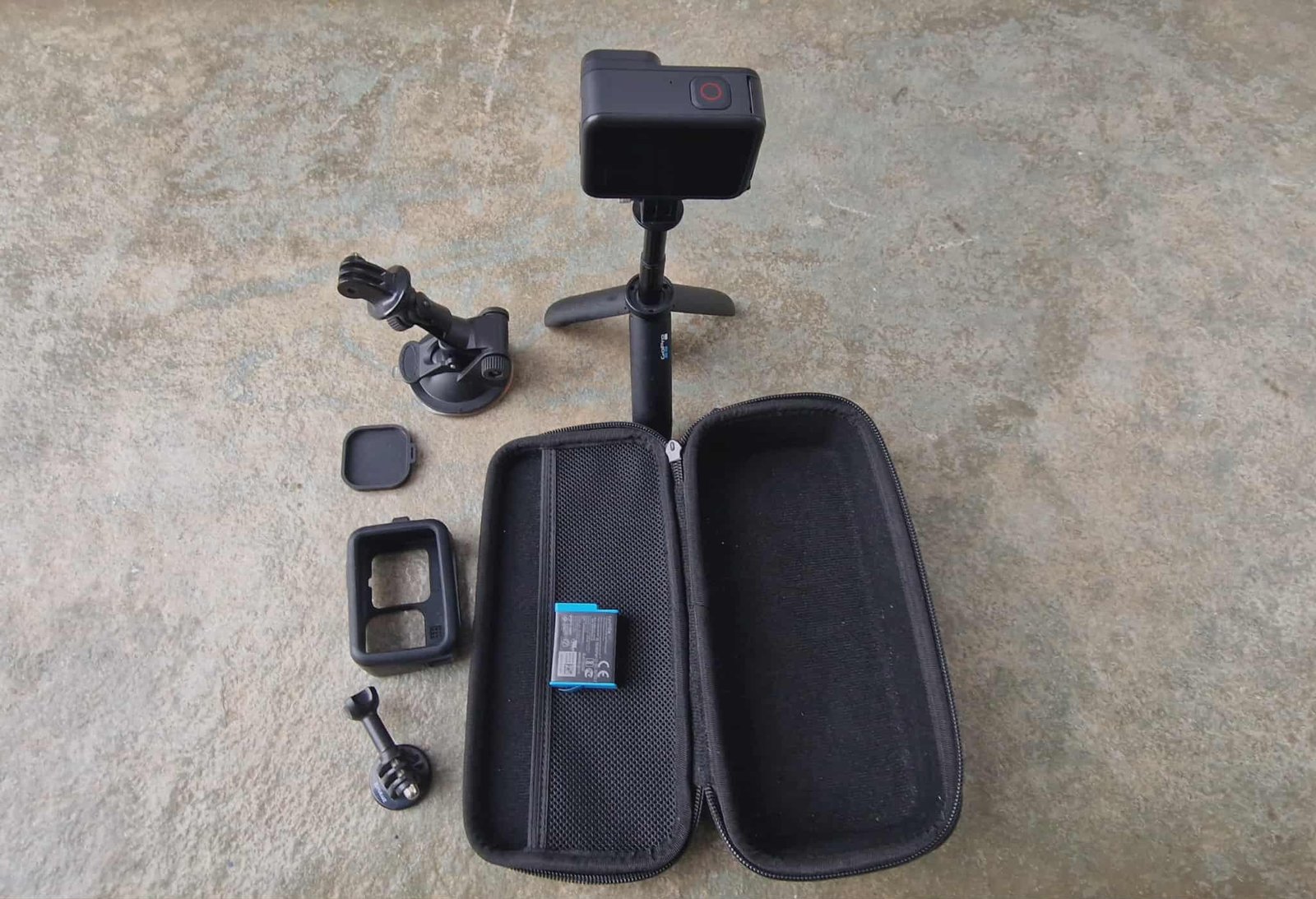 Μαζί και τρίποδο, θήκη προστασίας, θήκη μεταφοράς, και βεντούζα.