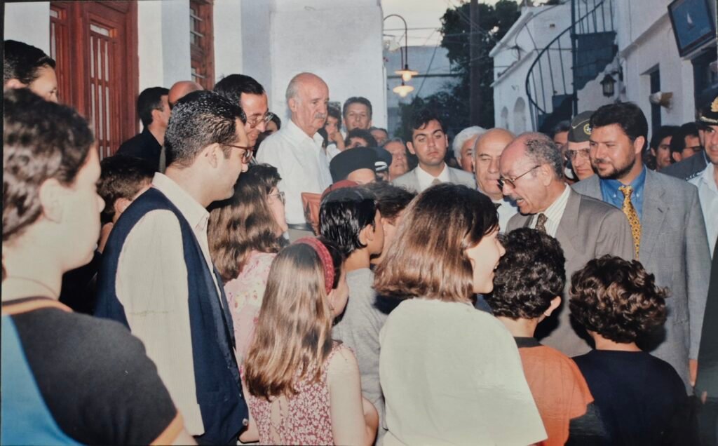 Από την επίσκεψη του προέδρου της Δημοκρατίας Κωστή Στεφανόπουλου στην Σίφνο, πηγαίνοντας για του Δρακάκη.