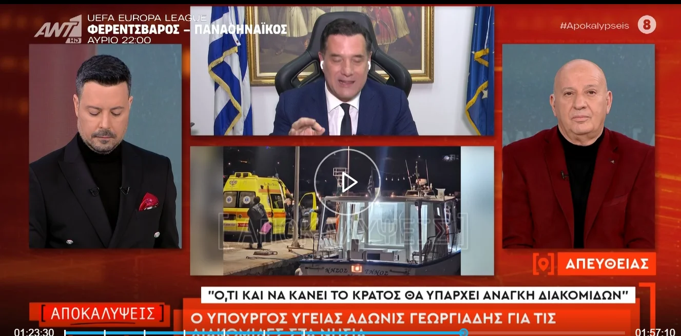 Ο υπουργός υγείας Άδωνις Γεωργιάδης μίλησε στην εκπομπή του ΑΝΤ1 “Αποκαλύψεις”για τις διακομιδές ασθενών από τις Κυκλάδες.