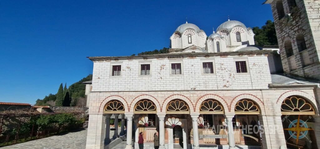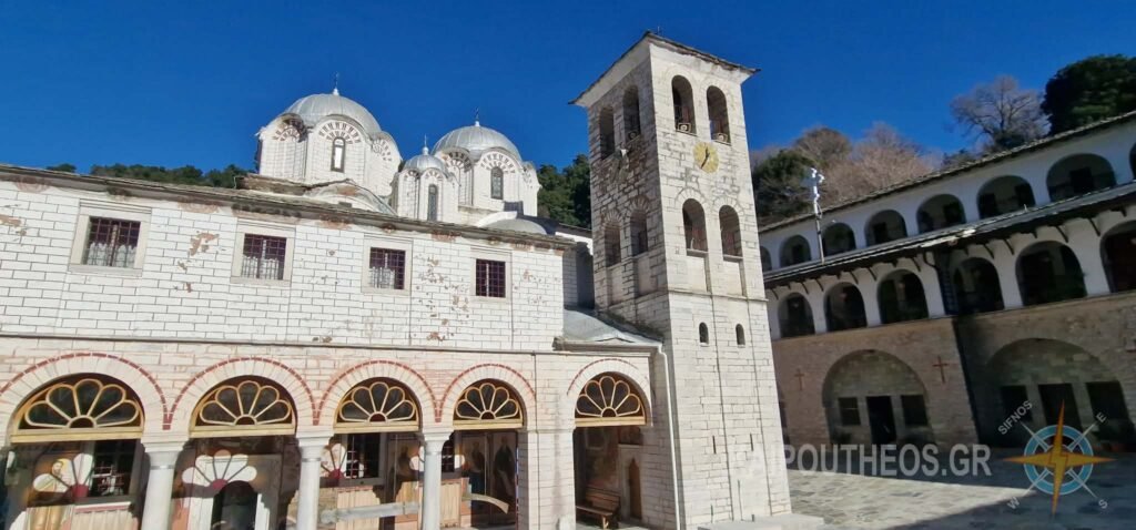Ολόκληρη η Μονή περιβάλλεται από ψηλό τείχος και στο κέντρο της βρίσκεται ο Ναός των Εισοδίων της Θεοτόκου.