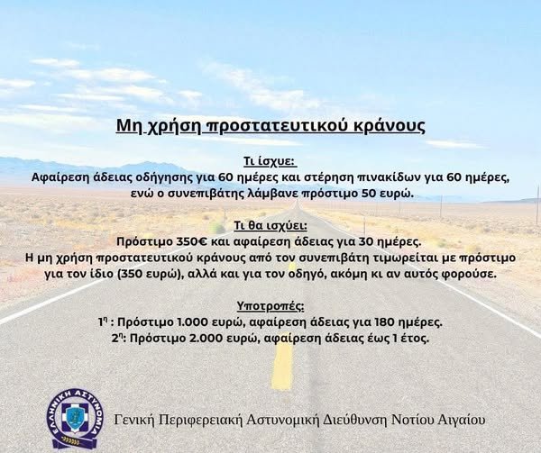 Δες τι ισχύει για τη μη χρήση κράνους και ζώνης