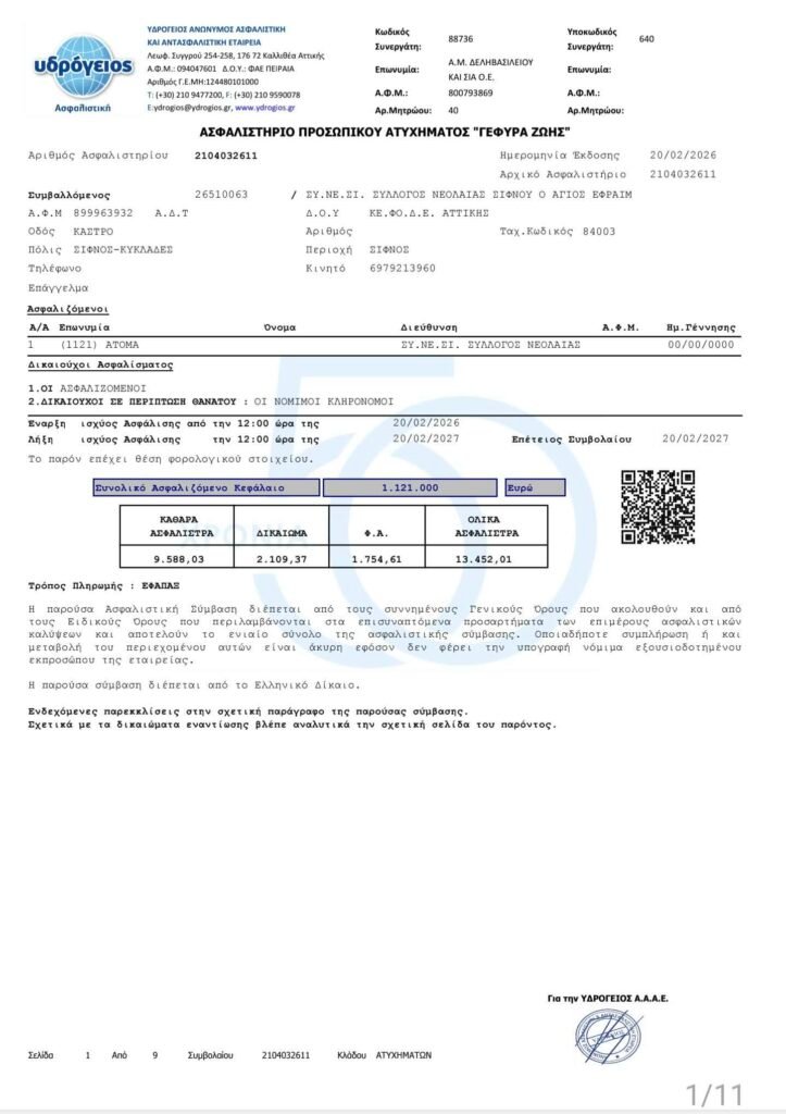 Ο Σύλλογος Νεολαίας Σίφνου “Ο Άγιος Εφραίμ” αποδεικνύει έμπρακτα πως η αγάπη για τον τόπο μετατρέπεται σε πράξη ευθύνης και προσφοράς. Με αίσθημα κοινωνικής αλληλεγγύης και βαθιάς φροντίδας για κάθε κάτοικο του νησιού, προχώρησε στην ασφάλιση των κατοίκων της Σίφνος σε ιδιωτική εταιρεία για την κάλυψη αεροδιακομιδών ασθενών.