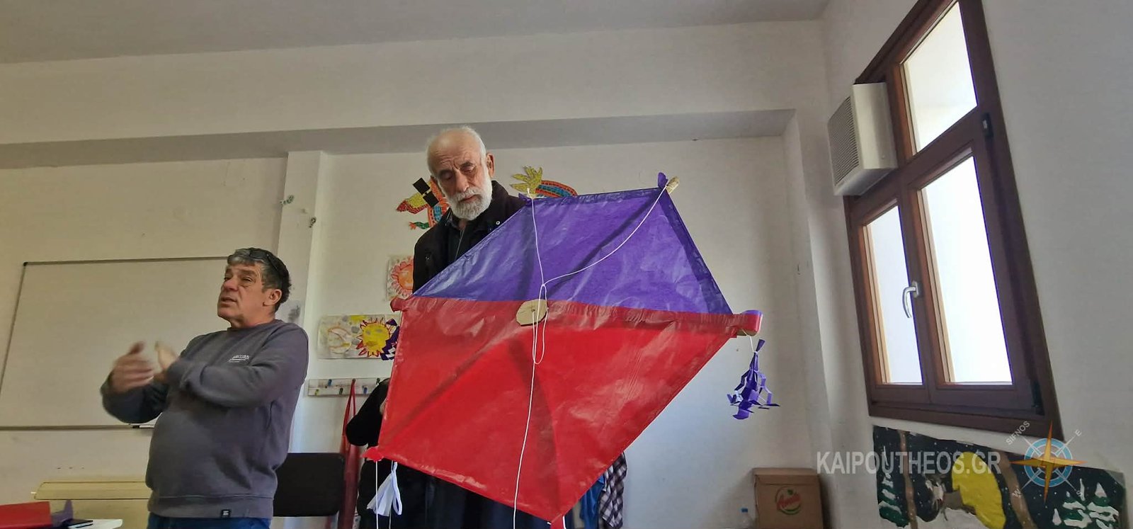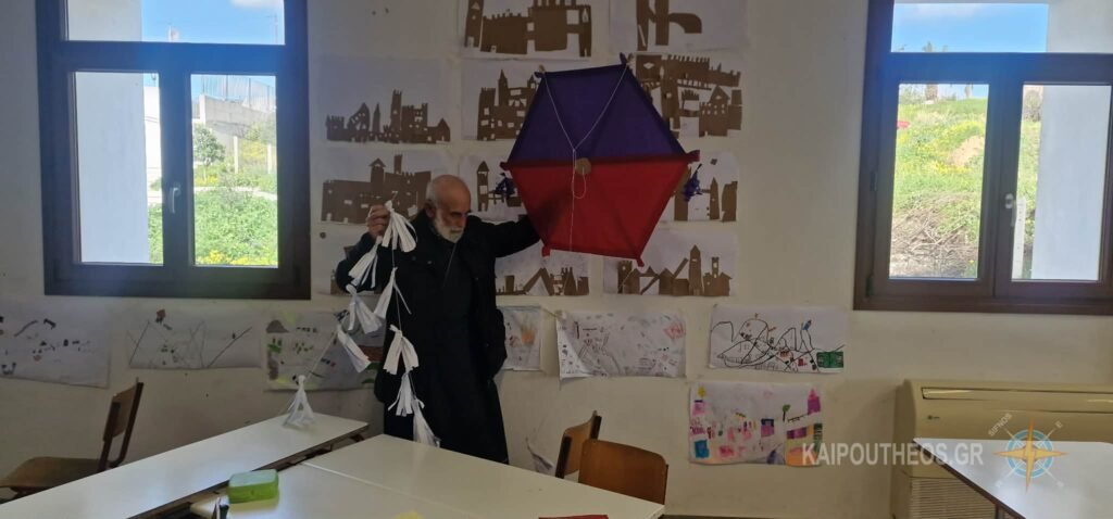 Με την ομιλία για τις Απόκριες ακολούθησε βιωματικό εργαστήριο στο οποίο ο παπα-Γιάννης και ο Γιώργος ο Σταυριανός έδειξαν στα παιδιά τον τρόπο με τον οποίο έφτιαχναν τους χαρταετούς στο νησί.