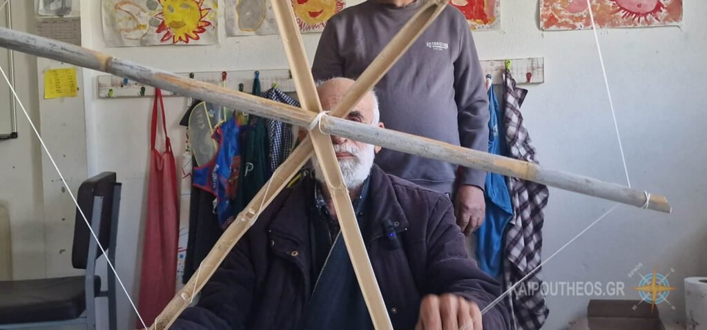 Οι δύο άνθρωποι μεταλαμπάδευσαν σήμερα στους μαθητές και στους εκπαιδευτικούς τον τρόπο και την διαδικασία δημιουργίας του παραδοσιακού χαρταετού..